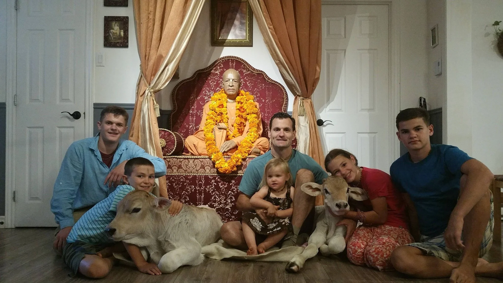 3 milking cows (Vrnda, Gaurangi and Cintamani), 2 Heifers (Nandini and Surabhi) and 2 Bulls (Krsna and Balarama)